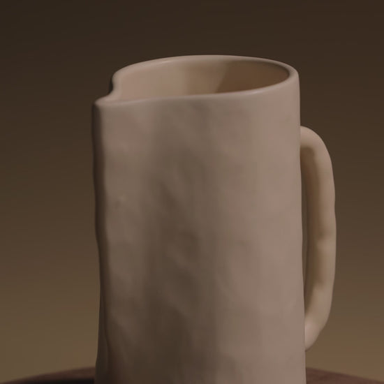 Defined by its sculptural silhouette, this pitcher is crafted to anchor a table or setting — equally refined for pouring or for displaying stems with quiet elegance.
